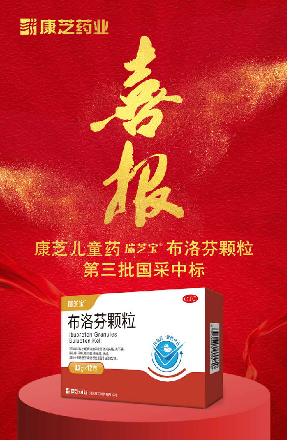 8月20日,第三批全國藥品集中采購中選結(jié)果發(fā)布,康芝藥業(yè)全資子公司河北康芝制藥有限公司生產(chǎn)的兒童藥瑞芝寶?布洛芬顆粒成功中標(biāo)!